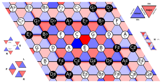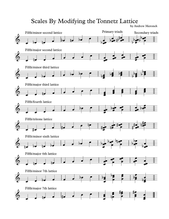 – You can conduct this exercise for any shape in the lattice that contains any number of triangles and nodes, not just my “major scale” trapezoid.
